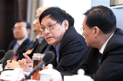 昨日,北京市人大代表、市纪委书记叶青纯参加石景山团小组审议时发言。 新京报记者 尹亚飞 摄