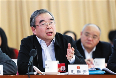 昨日,市人大代表、国家卫生计生委新闻发言人毛群安在海淀团分组会上发言。 新京报记者 尹亚飞 摄