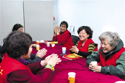2014年12月13日,五芳园护花队成员在居委会开会。她们平均年龄为62岁,年龄最大的72岁。