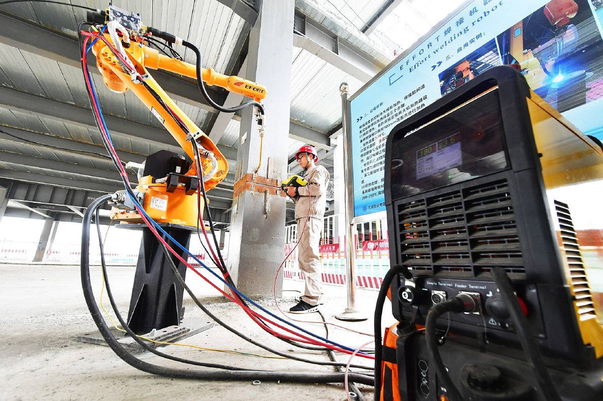自动焊接机器人在城市副中心重点工程工地“大显神威”。记者 常鸣/摄