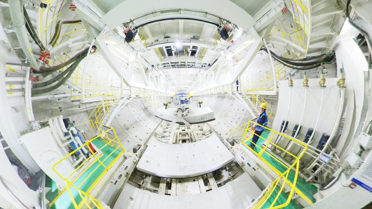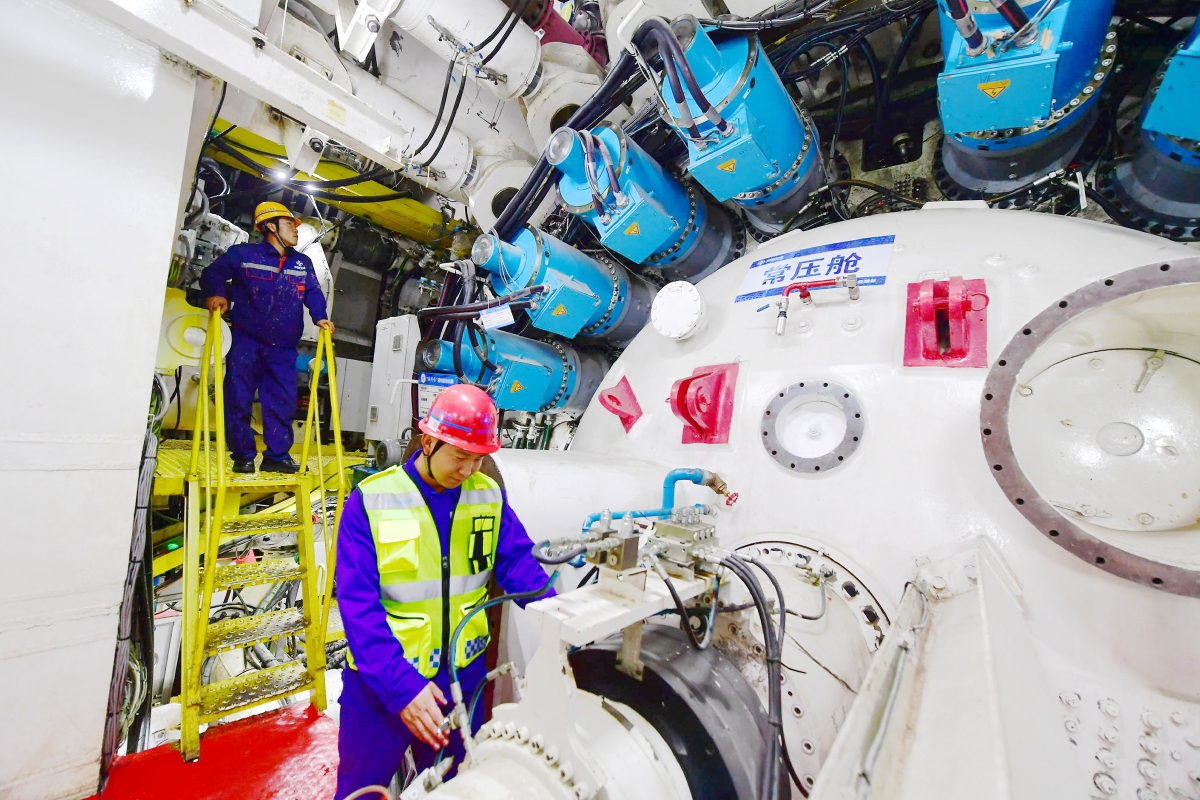 工作人员正在检查盾体,确保安全掘进。