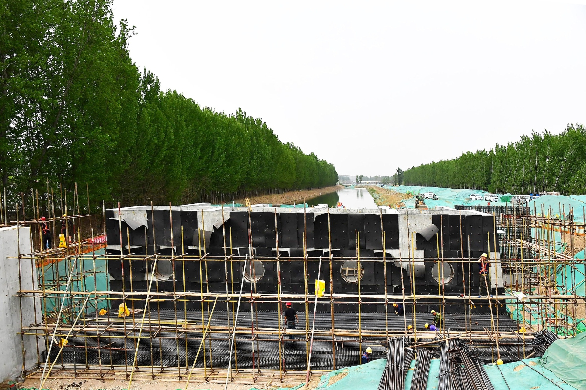 昨日下午,记者在施工现场看到,数十名工人正在编织出水口底板的钢筋网,目前,泵站主体完工,东、西侧档墙施工已进入准备工作。北京建工城乡集团金河水务减运沟治理项目现场负责人王通介绍,此次治理将新挖河道1.6公里,扩挖河道3公里;新建绿道16公里,同步实施岸坡绿化43公顷,将对原有河道进行疏挖,新建河道两侧新增30米范围的景观绿化。河道建成后,不仅可提高通州区的防洪排水标准,同时,工程还将对减运沟水体进行生态构建,实现减运沟排水、蓄涝兼风景观赏的河道规划目标。