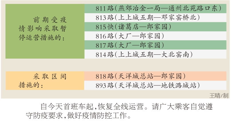 根据廊坊市三河市相关部门的意见,前期受疫情影响采取暂停运营措施的6条进京通勤公交及两条采取区间运行措施的通勤公交,今起恢复运营。具体包括: