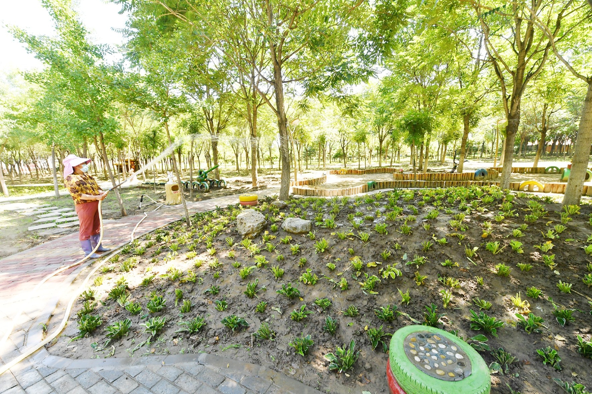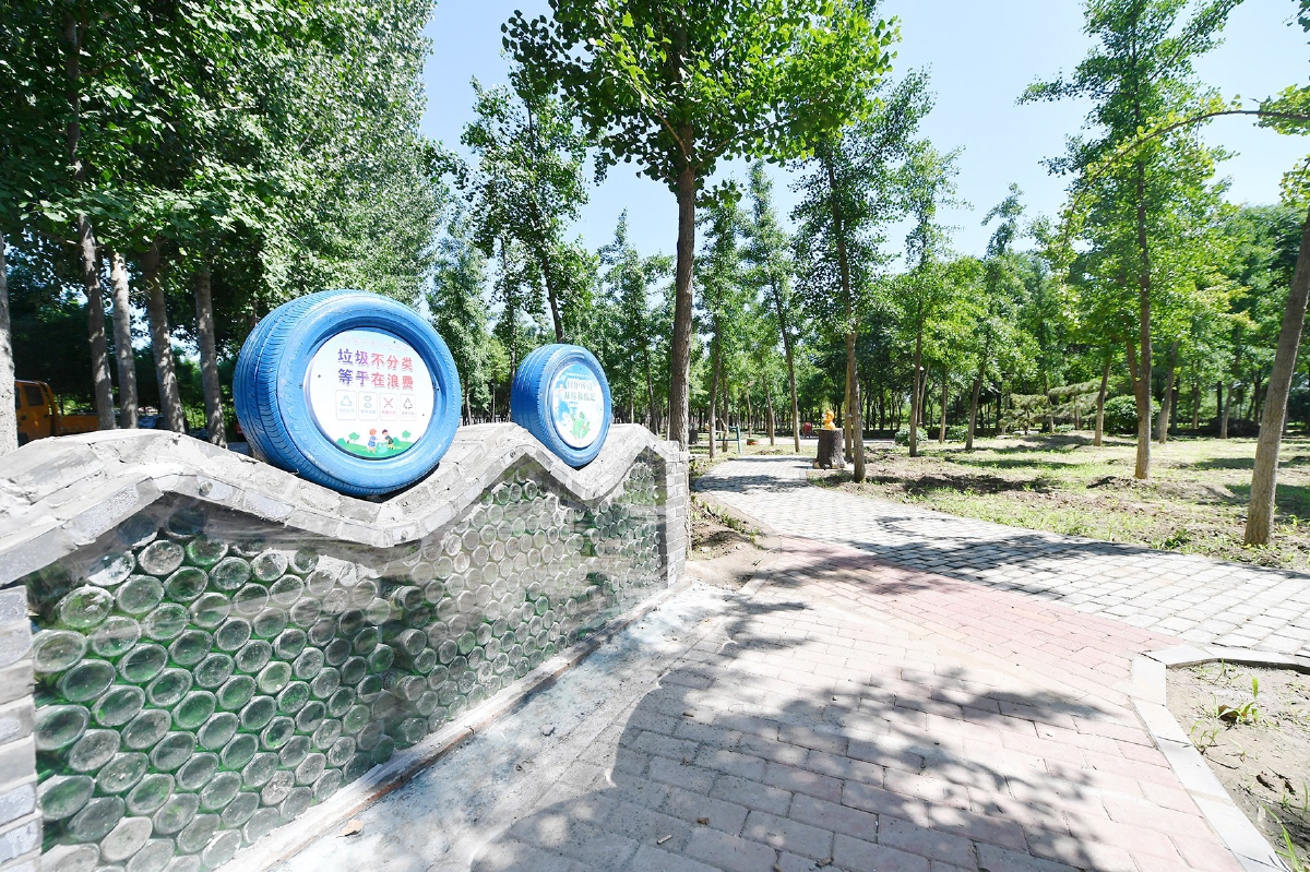 走进南刘庄村村头片林,废弃轮胎改造的秋千、坦克、攀爬墙,木制的水车、休闲座椅,废弃玻璃瓶堆建的宣传墙,加上垃圾分类的宣传牌及主题画,巧妙地与树木融合,演绎了一曲和谐的森林乐章。“我们以垃圾分类为主题,通过收集部分可回收垃圾,融入设计理念,将其改造成为环保公园里可玩、可看的休闲设施。”乡林场相关负责人赵丽芳介绍,同时,公园还在林地原地形的基础上,铺设健身步道和沙坑、栽种花草、安装健身器材等,使村民、孩童休闲娱乐拥有更多选择。