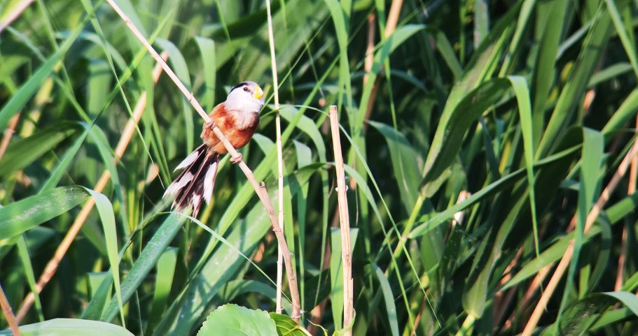 岸边的芦苇跳动了两下,是两只东方大苇莺在“搞气氛”,羿健举起望远镜看,“嘿,绒毛还立着呢!”原来这是两只亚成鸟,看得出在这个繁殖季刚刚长大。紧接着,羿健又将望远镜转向与芦苇衔接的草地,一棵垂柳洒下的阴凉处,两只丝光椋鸟正与一只麻雀共进午餐。
