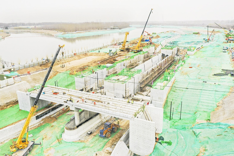 日前,记者在北运河榆林庄船闸施工现场看到,船闸两侧的主体轮廓已经成型,现场工作人员正在船闸上下闸首、闸室的脚手架上施工,安装在底板上的吊车正在有序吊装,板面上的水泥路面基本铺设完成。船闸前方,一座连接南北的桥桩也已搭建成型,“这是横跨船闸航道的交通桥,是连接西集和漷县的重要组成部分。”施工方负责人介绍,交通桥为钢筋混凝土结构,预计5月底前可完成桥面吊装,实现通车。接下来,沿岸还将建设慢行道、休息区、观景区等服务设施,利用此前的河堤路、巡河路,打造集骑行、步行等功能于一体的慢行系统,让游客有的看、有的玩。