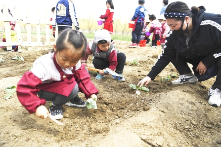 小朋友们在农庄体验农耕生活,从小培养爱劳动、珍惜粮食的好习惯。记者 党维婷/摄