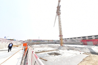 据介绍,目前永久会址项目的土护降工程已完工,正在进行垫层、防水和地埋管施工。按照工期计划,五月中下旬地下室结构出正负零,整体工程年内完工。