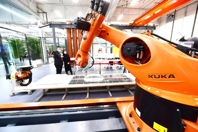未来设计园区内的“机械臂”,可以将设计师的设计直接打印成实物模型。(资料图) 记者 常鸣/摄