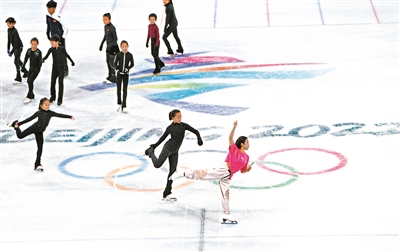 图为北京冬奥会花样滑冰双人滑冠军隋文静(右一)在首都体育馆开设“冠军讲堂”。摄影/本报记者 黄亮