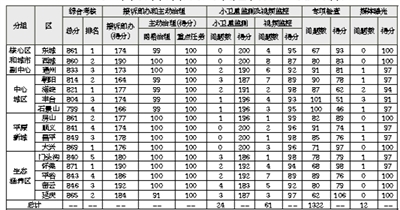 2022年6月份,首都环境建设管理办按照《关于印发首都城市环境建设管理考核评价工作方案的通知》(首环建管〔2022〕1号)要求,围绕接诉即办和主动治理400分,小卫星监测及视频监控300分,专项检查200分,媒体曝光100分四个方面,采取千分制扣分开展考核,并按综合考核得分进行排名。