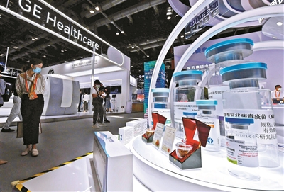 | 昨天是服贸会正式向社会开放的第一天,在国家会议中心综合展厅,“中国服务贸易10年成就展”吸引了不少观众驻足。图为观众参观国药集团展台。摄影/本报记者 袁艺 |
