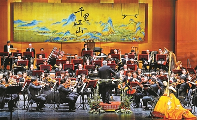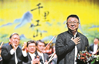 在作曲家的精心布局下,每一乐章都各自独立,而“云飞起,楚天千里”中的主题素材也在变换中反复出现,令各个章节又有序地勾连在一起,让观众从不同层面上感受到祖国河山的壮美和绚丽。从某种意义上说,相比那幅众所周知的千古名画,交响音诗《千里江山》不仅让观众感受到了画面丰富的色彩和山水轮廓,也赋予了历史的厚度与文化的深度,其提供的丰富的想象空间更加广阔。