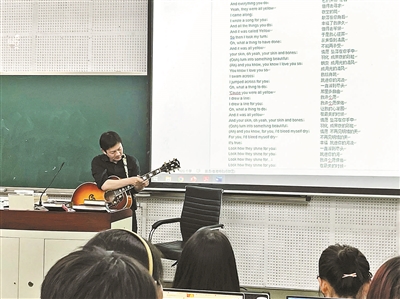 吴思婷来自四川外国语大学英语语言文学专业,此前,她从未想过能在一门选修课的课堂上跟随老师一起歌唱起来。那门课叫做《视觉文化研究》,主要学习绘画、摄影、电影等艺术的发展史和理论等,任课教师段老师是一位绅士儒雅的男士,为了让同学们放松下来,更彻底地沉浸在艺术作品中,他经常在讲课过程中弹唱歌曲,并邀请大家一起唱。她记得,在讲解梵高的画作时,段老师背起吉他,弹唱了那首特别经典的《vincent》,唱到副歌部分,大家都情不自禁地跟着和了起来。