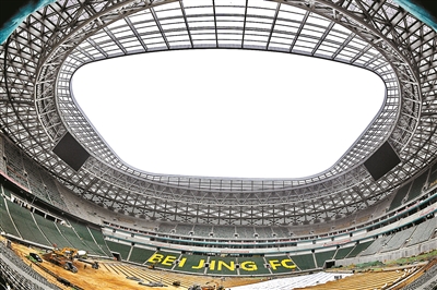 北青报记者在现场看到,目前场芯部分已经完成了回填土作业,正在进行球场草皮的铺设准备。球场南北两端的大屏幕以及环绕全场的环形屏幕也均已完成安装,后期将进入联调联试阶段。而比肩欧洲顶级俱乐部的球场照明工程也已经完成安装,正在等待最后的测试。