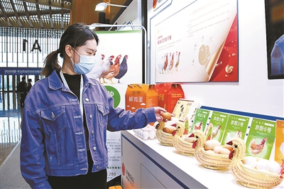 | 在畜牧展会上,参观者正仔细对照京系列红壳鸡蛋 |