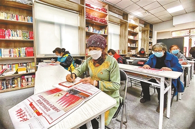 昨日,安德路北社区党委在新时代文明实践站组织红石榴先锋团志愿者读报告、谈心得。志愿者李友华感慨,在党的领导下,各族人民砥砺奋斗取得国家变革性实践、突破性进展、标志性成果,让自己更加热爱伟大的祖国、伟大的党。在未来实现中华民族伟大复兴之路上,作为一名党员志愿者,要在志愿服务的岗位上平凡却又充满热情,未来将继续不忘初心,让志愿服务永不褪色,继续努力为民族团结家园建设贡献一名老党员的绵薄之力。