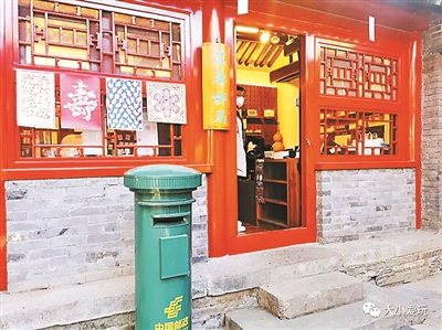 万寿寺也不例外,在入口山门殿东西两端,各有一家“万寿邮局”,喜欢集印章的朋友别错过。里面有很多明信片、冰箱贴等文创小礼物,自己带个本子,关注公众号后就能免费盖章,也可以买套6连张的精美明信片,在空白处疯狂盖章。