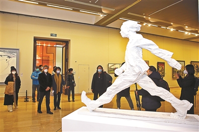 12月12日,观众在位于北京东城区的中国美术馆观看由中国美术家协会、北京市文联主办的“2022新时代首都美术展”。