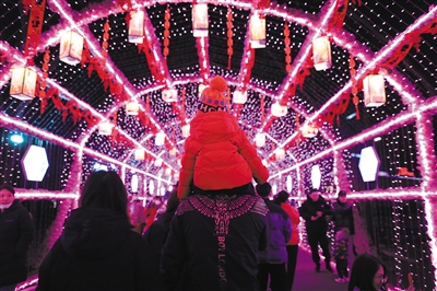 正月十五闹花灯,灯火璀璨耀京城。吃汤圆、猜灯谜、赏花灯、看非遗……兔年元宵节,北京市共有72个剧场举办了136场演出,精彩文化活动陪伴市民朋友一起欢度佳节。元宵节当日,新京报记者走进北京世园公园、大兴区安定镇等地,和市民朋友一起闹元宵。