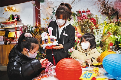 昨天上午,玉渊潭公园科普工作人员和志愿者带领大家猜灯谜、做花灯,科普蜡梅知识。