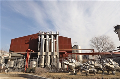 1月3日,E9区创新工场。原乳品厂车间改造后,车间设备原样保留置于室外,“牛”、管、罐、水池形成完整的生态表达。 新京报记者 王飞 摄