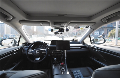 2月3日,记者体验乘坐“整车无人”自动驾驶车辆,车辆主驾、副驾均无人。新京报记者 李木易 摄