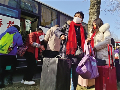 1月30日,北京顺义,80名家政服务人员从甘肃礼县搭乘“点对点”返京复工专车抵京。新京报记者 郑新洽 摄