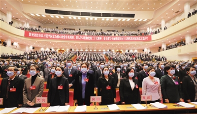 1月15日,北京市十六届人大一次会议隆重开幕,代表全体起立高唱国歌。新京报记者 王飞 摄