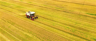 密云区河南寨镇小麦地里麦浪滚滚,“三优”农田迎来丰收。本版图片/密云区委宣传部供图