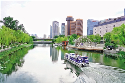 乘坐游船游览亮马河是备受游客欢迎的网红打卡项目,朝阳区水务局相关负责人介绍,“古都京韵·亮马河国际风情水岸”游船项目已实现东三环至红领巾湖6公里旅游通航。与此同时,一批滨河步道与市民见面,其中包括2022年10月1日,第四使馆区南侧1.5公里生态环境整体提升工程完工;孙河组团滨水空间已形成2.5公里滨水绿道、2.7万平方米雨洪湿地,为市民提供了12.2万平方米高品质公共空间。