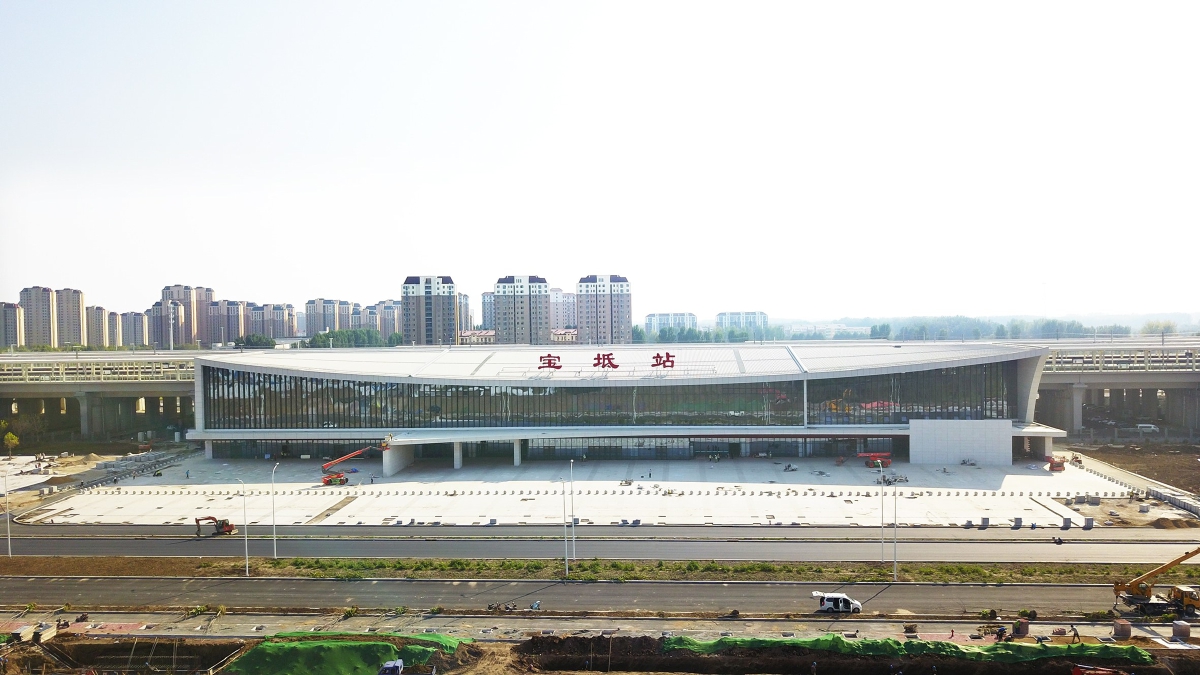 坐落于天津市宝坻区的宝坻站是京唐、京滨及规划津承城际铁路的交会点,也是京唐城际铁路唯一一座位于天津市的车站。车站总建筑面积为15973平方米,规模为4台10线,每小时最高聚集人数1500人。站房设计体现“坻上飞举、古城新韵”的概念,汲取了中国古典建筑“起翘”“飞檐”的元素,运用呈上升形态的立面造型,寓意宝坻站将提升城市活力、促进地方经济繁荣。同时,候车大厅内以一座大型沙雕《宝坻八景图》为主题,展现宝坻悠久文化历史,突出地处京津冀协同发展重要地带的作用。