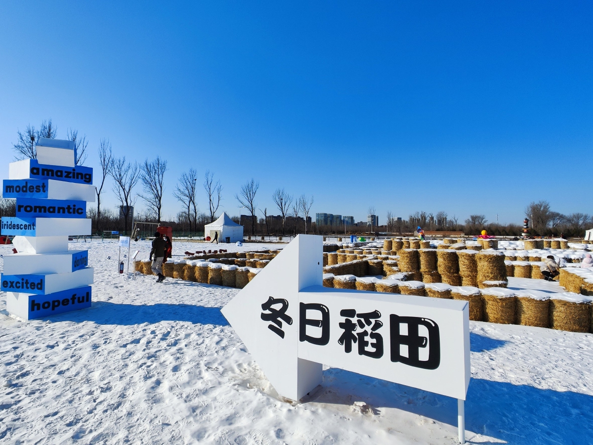 冰雪亲子乐园打造出专属稻田迷宫,趣味十足。记者 常鸣/摄