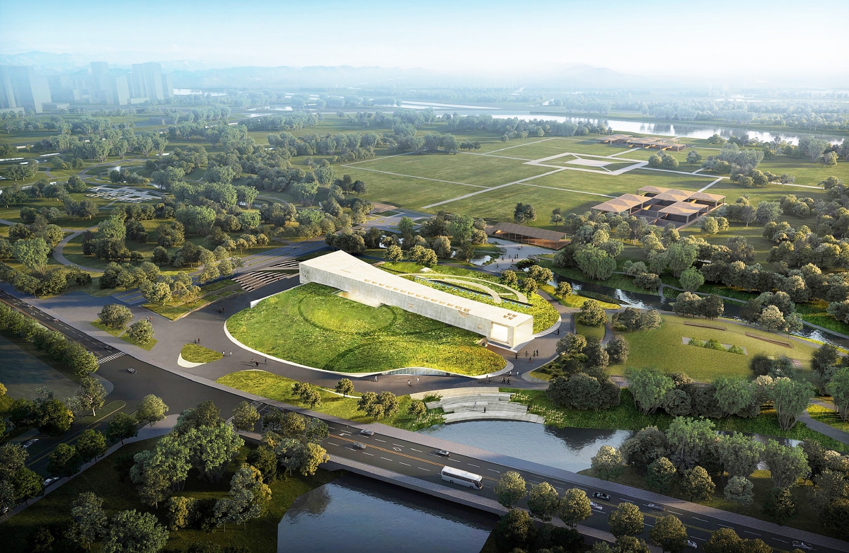 位于遗址公园主轴线东侧、镜河西侧的路县故城遗址是2016年城市副中心建设前期考古勘探时发现的西汉遗址,曾获评“2016年度全国十大考古新发现”。路县故城遗址保护展示工程作为其配套博物馆,位于路县故城考古遗址公园范围内,总建筑面积2.013万平方米,包括了藏品库区、藏品技术区、展示陈列用房、教育与公众服务用房、业务与研究用房、行政管理及附属用房等。