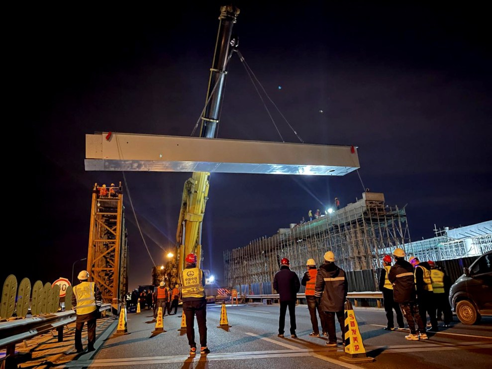 钢梁架设现场。(中铁上海工程局供图)