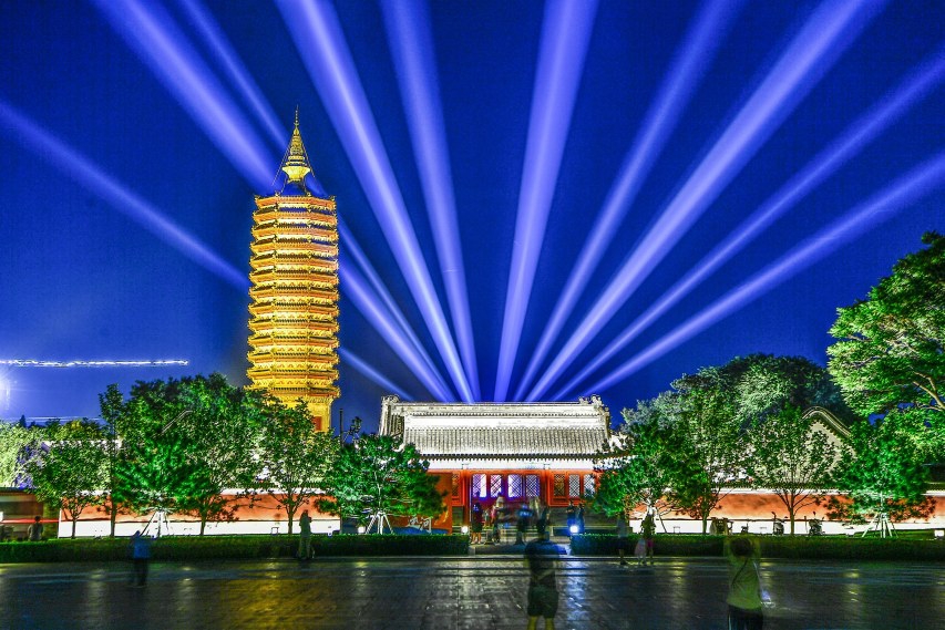 燃灯塔和周边古建筑群夜景照明
