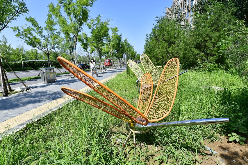 随着北京环球度假区正式开门迎客,周边的环境也在悄然发生着变化。2021年5月,通州区城市管理委开始对北京环球度假区周边环境启动综合整治提升,张志刚家门口的万盛南街被纳入了整治提升范围内。全长5.7公里的万盛南街,栽植各类乔灌木3444株,地被70733平方米,结合道路北侧现有绿地及场地空间,设置城市客厅2处、口袋公园4处、休息区10处,绿地上点缀的可爱瓢虫和蚂蚁雕像,让人不由得眼前一亮。