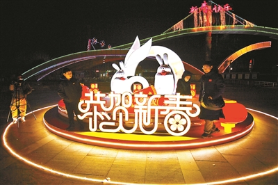 小年夜,朝阳区6处新春景观小品装置精彩亮相,分别是:神路街的“朝阳锦绣”景观小品,充分体现剪纸艺术,利用灯笼等元素突出传统文化精神,展示朝阳区红红火火的节日氛围和朝阳区的高速发展。朝阳公园是春节期间市民重要的游乐场所,在公园南门打造的“玉兔捧福”景观小品将为市民带来浓浓的年味儿。这组小品以大白兔形象突出兔年生肖特点,而且暖色系兔子剪影增加了设计动感及与其背景彩环的互动性。