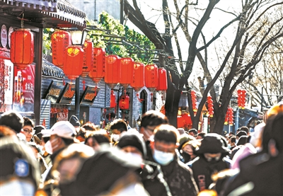 1月27日是农历正月初六,北京南锣鼓巷游人如织,热闹非凡,人们在这里游览古街、品尝美食,享受春节假期的最后一天。