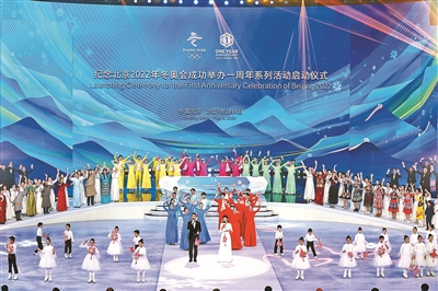 2月4日晚,在北京2022年冬奥会盛大开幕一周年之际,“纪念北京冬奥会成功举办一周年系列活动”启动仪式在北京首钢冰球馆举行摄影/本报记者 崔峻