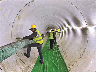 随着工人返岗,北京市南水北调配套工程重点续建项目陆续复工,大兴支线新机场水厂连接线、河西支线、团九二期等工程有序推进。昨日,北京青年报记者从市水务部门获悉,北京市南水北调配套工程共10个标段进入实体施工阶段。其中,大兴支线新机场水厂连接线工程返岗人员178人,目前3段顶管区间已开始顶进,同步进行钢管安装。据悉,大兴支线新机场水厂连接线工程预计今年年内实现全线贯通,为新机场水厂提供双水源通道。