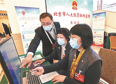 在市人代会预算审查专区,几名人大代表登录人大预算联网监督系统,查看相关部门预算情况
