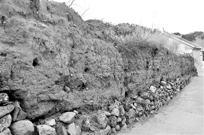 我一时不能找到城堡遗址,只在村子周围的山石间偶然发现垒砌整齐的巨石,几十米长,一两米高不等,垒砌随着山坡起伏,有的已被挡在房屋院落的后面。城堡方位并不正,而是顺山而建,按照阳光和长城的位置判断,这可能是城堡的北墙。城墙与山崖衔接,有些地段没有毛石,而是充分利用周围的岩石,形成天然屏障。仅此一段,再寻,已很难觅到了。近些年的资料显示,这段城墙毁坏严重。