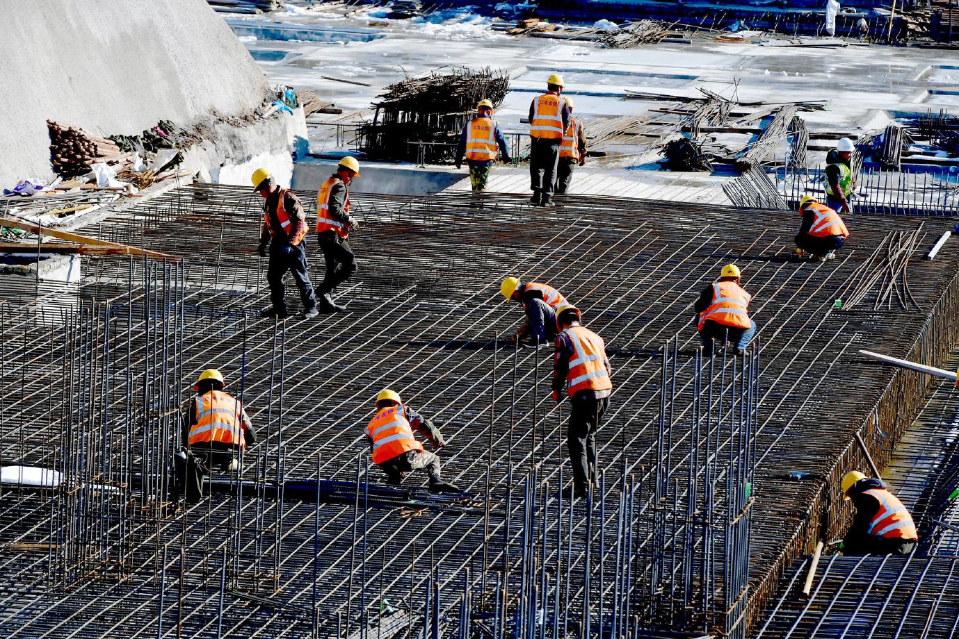 绑扎钢筋、浇筑混凝土……施工现场一片繁忙景象。 记者 常鸣/摄