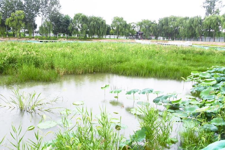 “北京生态治河的理念在萧太后河景观提升及生态修复一期工程中得到充分体现。”北京碧通台马水环境治理有限公司袁杰说,绿意葱茏的植物和工程手段相结合,生态护岸一方面保障河道行洪排涝安全,同时也作为有生命的河流生态系统的一部分,与河道自然衔接,小动物可在护坡与河道之间自由安全地活动。河道内还营造一处6000多平方米的浅水湾,展现湿地生态。水质改善大量采用植物净化手段。睡莲、水藻、芦苇、菖蒲等美丽多姿的挺水、沉水植物,将承担起自然净化器的功能,在呼吸吐纳之间,让水质还清。河道中还设置10台太阳能曝气设备,帮助提高水体的自净能力。同时安装监测设备,自动采集水质监测数据,实时掌握水环境的变化。
