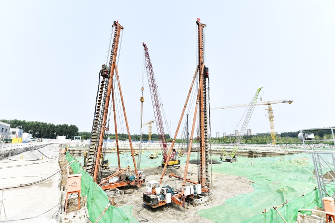 昨天上午,位于北运河以东的河东再生水厂内施工现场,一座最深达16米的基坑已被绿色苫布包裹,可有效防止扬尘,目前正进行土石方作业、竖向结构施工。“这个项目的难点在于深基坑施工,且面积较大,光挖土就挖了近29万立方米。此外,再生水厂建设对结构防水、混凝土的强度要求很高,所以防水、防渗均高于一般工程。”北京河东信泽环保科技有限公司总经理马锦兵告诉记者,目前正在运营的河东再生水厂,由于建设较早,规模及设施已不能满足该区域的污水处理需求,此次新建的河东资源循环利用中心项目位于现再生水厂西侧,将分两期建设,刚刚开工的一期工程采用PPP模式,建设内容主要包括粗格栅间及进水泵井、细格栅、曝气沉砂池、膜格栅、MBR生物池等地下空间构筑物和臭氧制备车间、液氧储罐等地上部分构筑物,设计出水水质将达到《城镇污水处理厂水污染物排放标准》(DB11/890-2012)中“新(改、扩)建城镇污水处理厂基本控制项目排放限值”的B标准。该厂采用中国水环境集团自主研发的分布式下沉再生水生态系统,有效地解决了噪音、臭气邻避效应,工厂的主要处理设备均处于地下,机械噪声和振动小,对地面的建筑不产生影响,地面的人听不到;固废方面,由于污水厂的固废只有污泥,污泥经脱水后进行干化处理,最后进行焚烧。