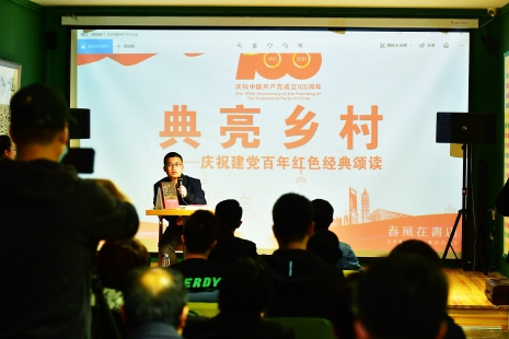 位于宋庄镇小堡村的春风在书店结合建党百年推出了一系列“典亮乡村”红色经典诵读活动,开展了“唱支山歌给党听”“红色评书专场”“春风奶奶歌声嘹亮”等丰富形式的红色主题活动,通过唱红歌、说评书等才艺展示,打造红色文化空间,引领更多读者爱上阅读。