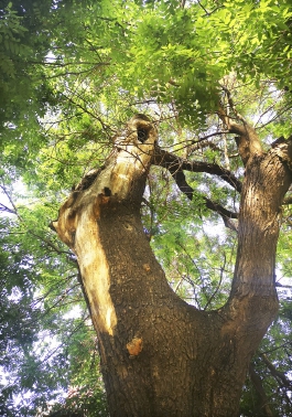 这株国槐相当粗壮,两个成人展开双臂也未必抱得住,树冠丰茂如一团墨绿浓云,但几年前,这棵树一度“病危”。