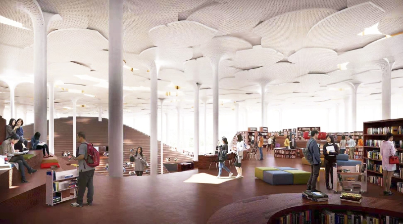 城市副中心图书馆撑开“森林伞盖”