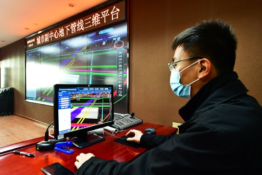 工作人员利用三维平台可随时查看地下管线排布情况。记者 唐建/摄